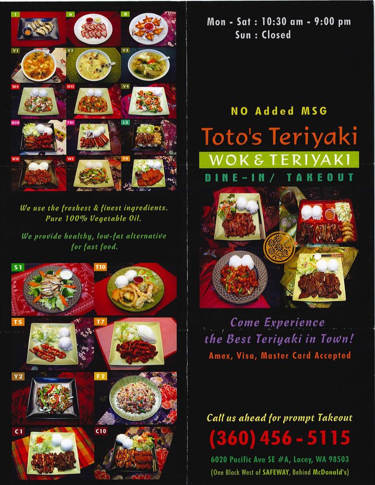 Introducing Totos Teriyaki & Wok: a vibrant fusion of Korean and Chinese cuisine nestled in Lacey, WA. With a diverse menu bursting with flavor, it caters to every palate. Delight in their appetizing gyoza, crispy egg rolls, or the savory crab rangoon to kick off your meal. The Chinese wok dishes are standout stars, with the Mongolian Beef and Sweet & Sour Chicken frequently hailed as favorites.